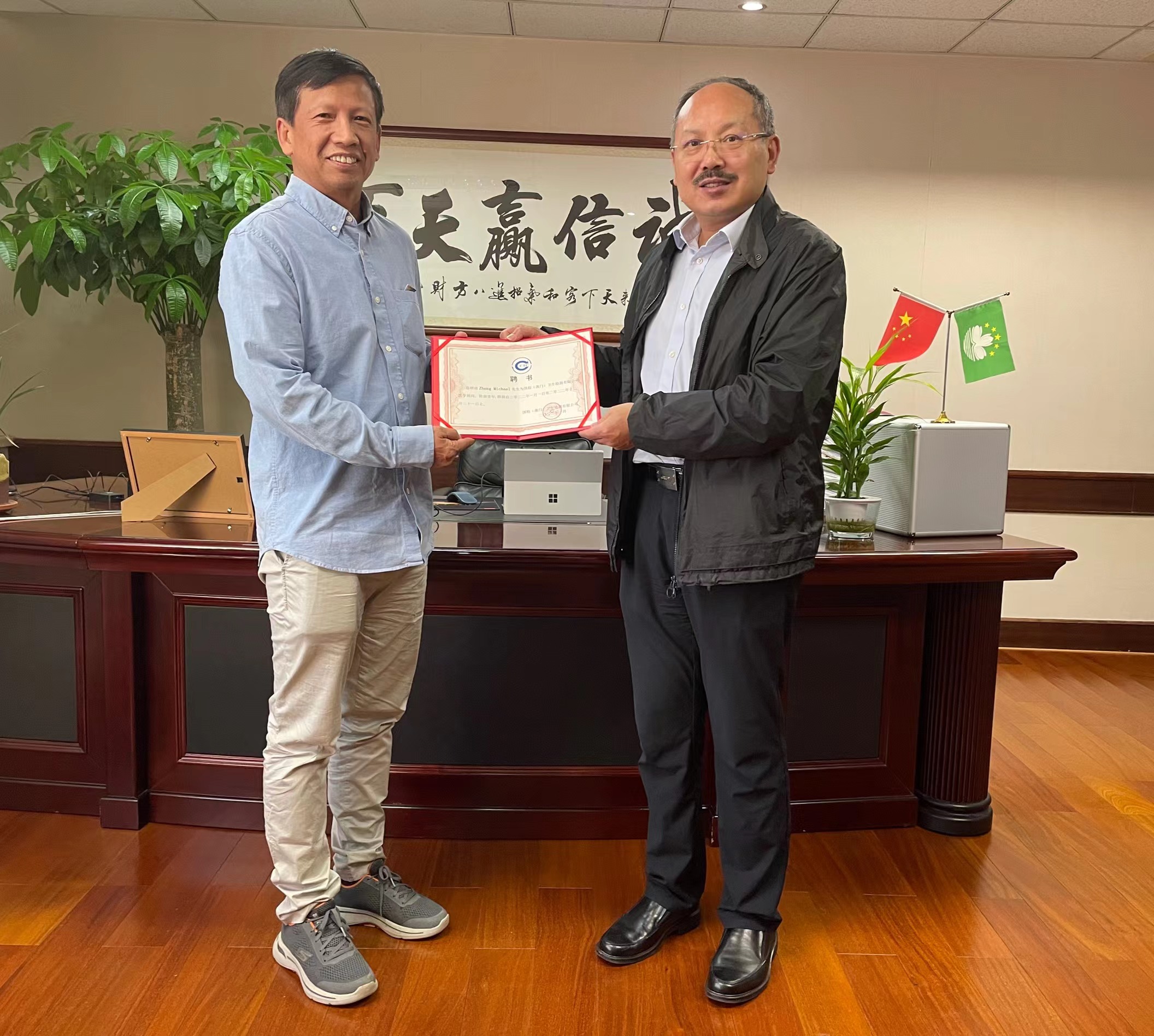 鄭明權(quán)副教授參觀了國檢(澳門)衛(wèi)生檢測有限公司的臨床分析實(shí)驗(yàn)室及放射實(shí)驗(yàn)室,在會(huì)談上,雙方就新冠病毒核酸檢測、基因治療、臨床病理檢測等項(xiàng)目進(jìn)行了深入的交流和探討。并就下一步開展臨床實(shí)驗(yàn)室檢測業(yè)務(wù)達(dá)成了初步共識(shí)。座談結(jié)束后我司向鄭明權(quán)副教授發(fā)放了聘書,聘請(qǐng)他擔(dān)任國檢(澳門)衛(wèi)生檢測有限公司的醫(yī)學(xué)顧問。